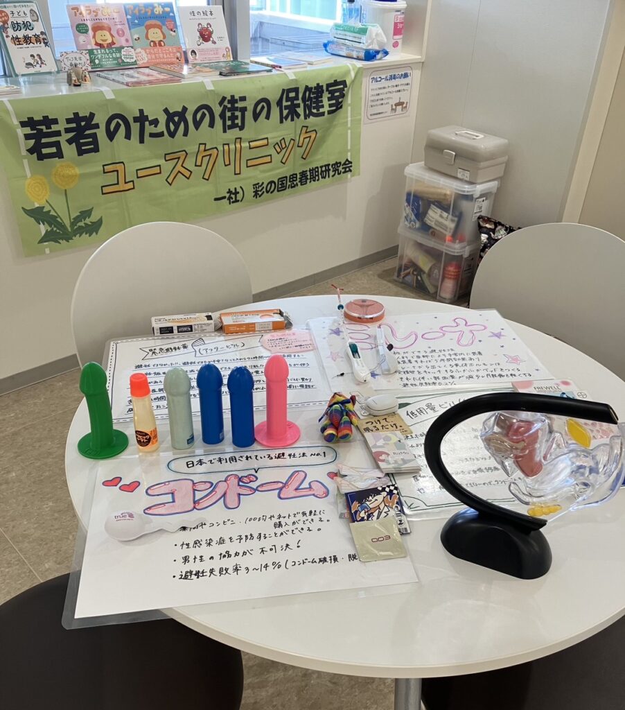 実際のユースクリニックに展示されている書籍や物品の一部を展示していただきました。参加者の皆様は手に取るなど興味をもって見ていらっしゃいました。